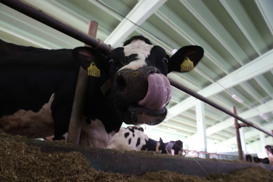 МТК начал работу в 2020 году, строился с нуля в чистом поле. Сегодня его территория впечатляет не только размерами, но и внешним видом: девять просторных коровников, три из которых предназначены для дойного стада, один для сухостойных коров, а остальные – для нетелей и телят. Есть склады для хранения соломы и сена, сенажно-силосные траншеи, ангар для техники.