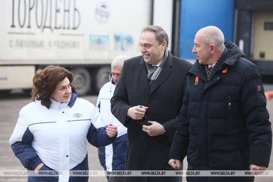 Сегодня Юрий Караев и председатель Гродненского облисполкома Владимир Караник ознакомились с работой предприятия и встретились с его коллективом.