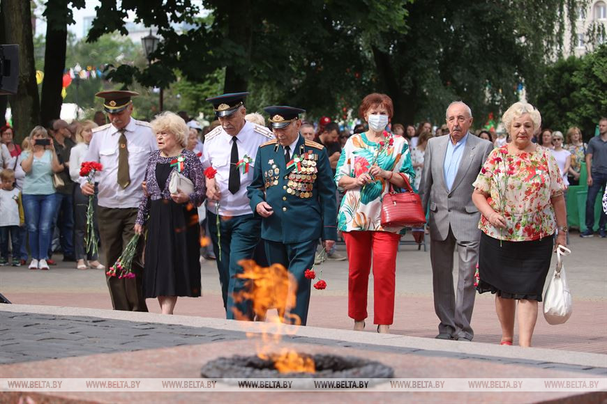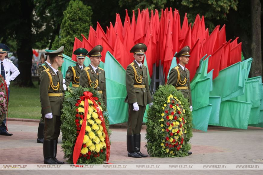 Торжественные мероприятия ко Дню Независимости в Гродно начались с церемонии возложения цветов к памятнику воинам и партизанам в парке им. Жилибера. Участие в ней приняли представители местной власти, организаций, предприятий, учебных учреждений города, общественных организаций, а также ветераны и жители города. Открыл праздник торжественный митинг на площади Ленина.