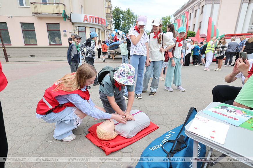 ОСВОД прикатил на Советскую площадь настоящий катер спасателей, и дети его буквально облепили. Кто-то с широко открытыми глазами слушал истории спасения, которыми делились специалисты, а кто-то уже примерял себя в роли матроса. "На этой площадке очень интересно, - отметила во время мероприятия четвероклассница средней школы №4 Ангелина Юшкевич. - Нам рассказали, как вести себя на берегу озера или речки и предложили забраться на катер. Мальчишки забрались, конечно, и даже сфотографировались. Хотим все тут посмотреть, в играх поучаствовать".