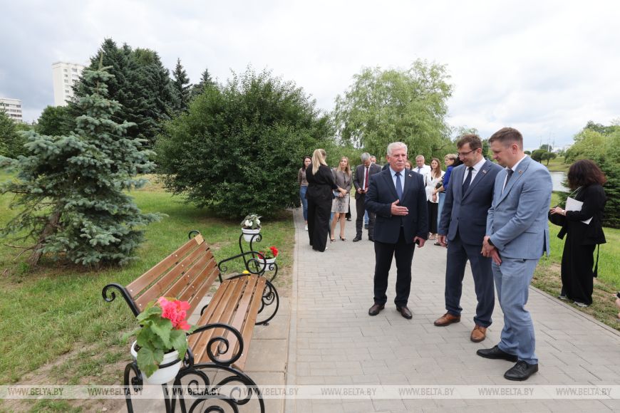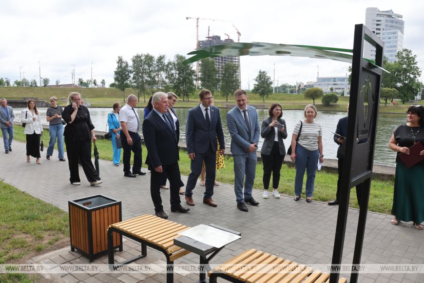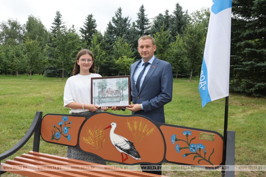 Про свой эскиз для скамейки рассказала и учащаяся средней школы №137 Анастасия Ольшевская. "Я решила поучаствовать в конкурсе, потому что считаю, что благоустройство родного района очень важно. В моем проекте присутствует элемент в виде буквы "Ў" - символа белорусского языка и идентичности нашего народа. Также я изобразила лист, который символизирует богатство белорусской природы. Рада, что поучаствовала в этом конкурсе и хотела бы принять участие в подобных ему", - поделилась Анастасия.