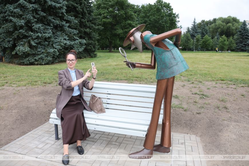 Еще один из представленных арт-объектов выполнен по мотивам рисунка Артема Митара, учащегося средней школы №115. Скульптурная композиция дополнена фигурой сыщика - его придумал и изобразил ребенок.