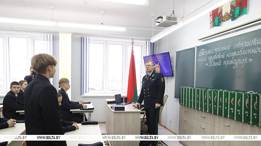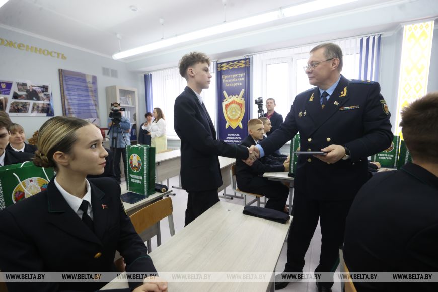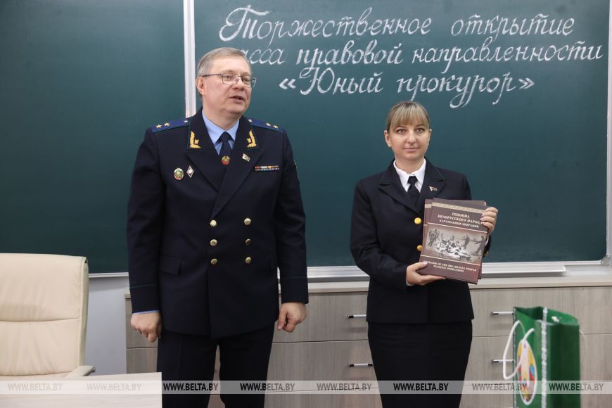 Учащимися правового класса стали 20 десятиклассников. Они в торжественной обстановке пообещали соблюдать Конституцию Республики Беларусь, сохранять историческую память белорусского народа, хорошо учиться. "14 классов правовой направленности функционируют в нашей стране с этого года. Один из них сегодня официально открываем в стенах этой школы", - сказал генеральный прокурор Андрей Швед. Он выразил уверенность, что выпускники в будущем станут работниками прокуратуры или сделают выбор в пользу других профессий, связанных с защитой интересов государства. "Подобного рода классы не просто необходимость. Сегодня как никогда важно, чтобы наши будущие поколения твердо понимали, какой ценой достались нам независимость, сама жизнь после Великой Отечественной войны, сколько усилий приложено и прилагается главой государства, всеми, кто стоит на страже правопорядка, тех, кто кует экономический щит нашей страны и защищает другие интересы государства", - подчеркнул генпрокурор.