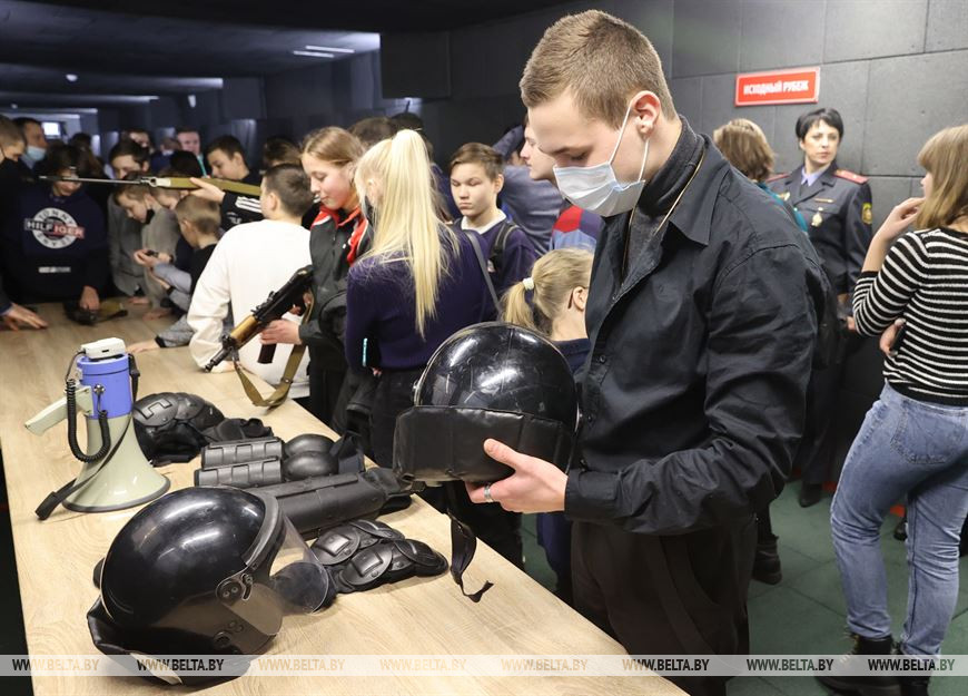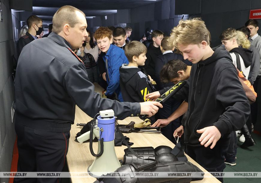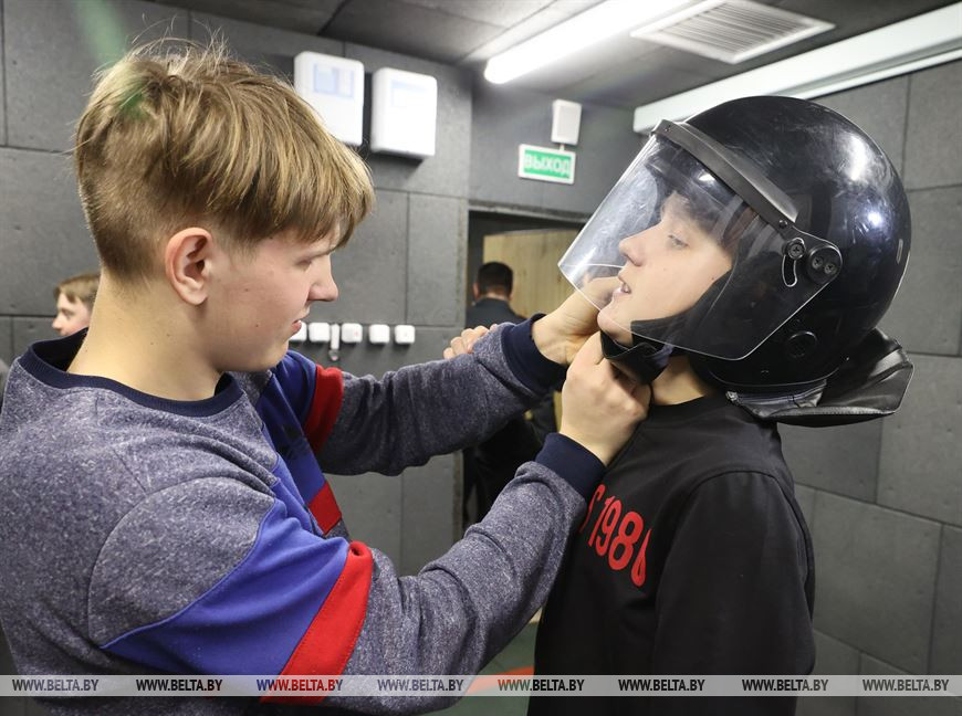 Ребята познакомились со своими будущими инструкторами, увидели, в каких условиях они будут заниматься. Всем пришелся по душе современный тренажерный зал, оснащенный тренажерами белорусского производства. В тире никто не прошел мимо бронежилетов, защитных шлемов и оружия. Милиционеры рассказали, что по статистике девочки стреляют более метко. И на будущих занятиях у представительниц слабого пола есть шанс доказать, что как снайперам им нет равных.