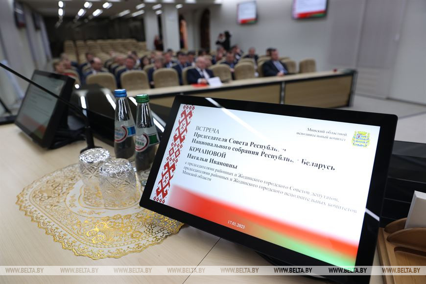 17 января, Минск /Корр. БЕЛТА/. Председатель Совета Республики Наталья Кочанова вручила председателю Минского облисполкома Александру Турчину поздравительный адрес по случаю 85-летия со дня образования Минской области, передает корреспондент БЕЛТА.