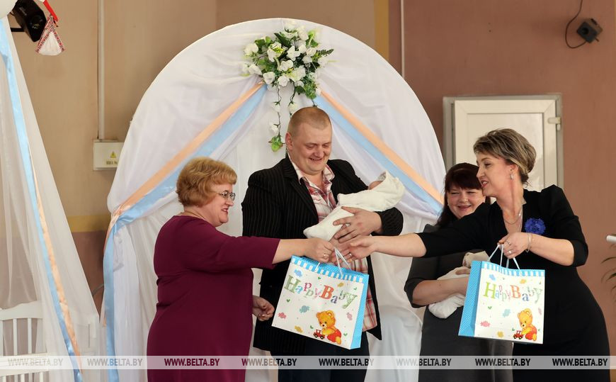 С двойным счастьем родителей поздравили председатель районного совета депутатов Александр Луцкович, управляющий делами Октябрьского райисполкома, являющаяся также председателем районной организации БСЖ, Валентина Шлапакова и другие гости. Торжественную регистрацию малышей провела начальник отдела ЗАГС Лариса Клочко. В районе несколько лет не рождались двойни, поэтому этой младенческой парочке были очень рады и власти.