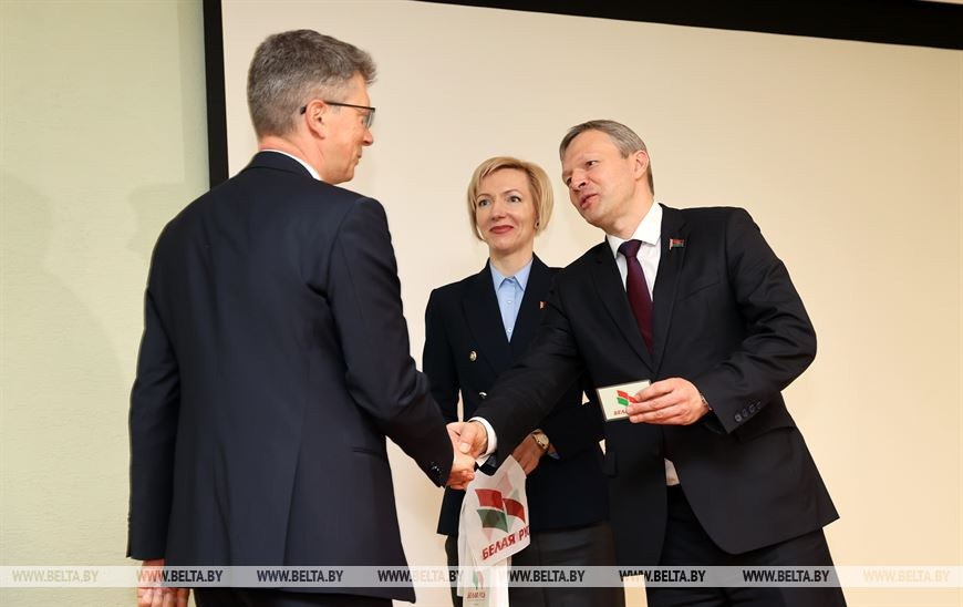 Лидер "Белой Руси" вручил 10 представителям центрального аппарата "Белоруснефти" членские билеты РОО "Белая Русь". В десятке первых обладателей символики - топ-менеджеры, руководители подразделений и отделов, молодежные активисты и лидеры. Среди них и геолог управления геологии и разработки месторождений центрального аппарата "Белоруснефти", заместитель председателя Молодежного совета компании по науке, инновациям и стратегическому развитию Роман Асвинов. "Я человек с активной жизненной позицией. Рад присоединиться к общественному объединению "Белой Руси" и в дальнейшем развиваться как в общественном, так и политическом плане", - отметил он.
