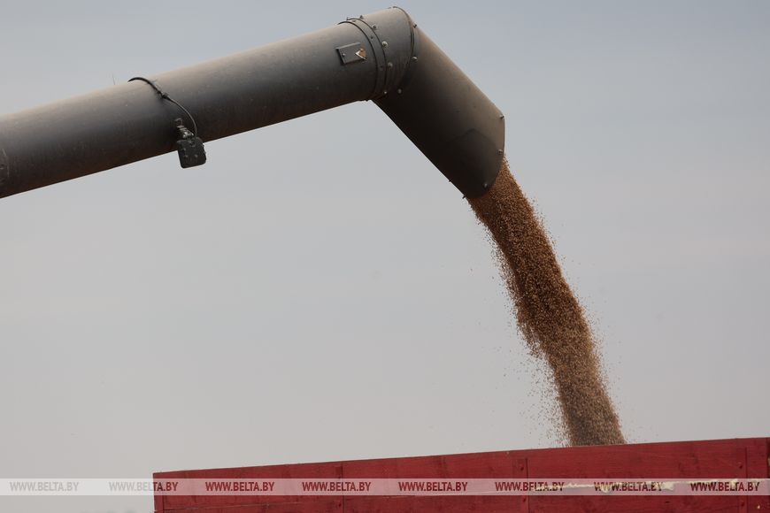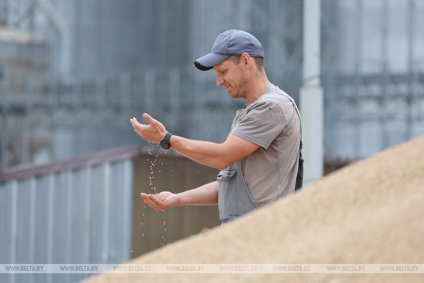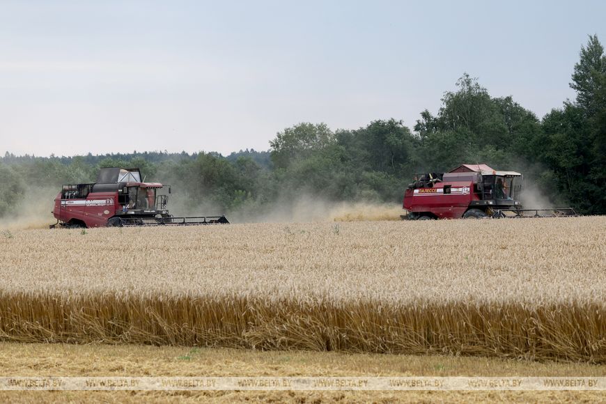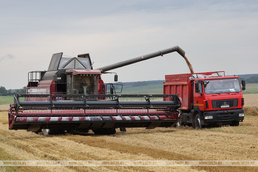 Руководитель райисполкома также рассказал, что аграрии района убрали пока пятую часть всех площадей. "Уборочная в этом году с неприятным сюрпризом, уборку зерновых стараемся организовать на весь световой день. Всего у нас 92 комбайна, в поля ежедневно выходят 88-89 из них. Парк большой, что-то выходит из строя, но вопросы ремонта решаются оперативно, надо отдать должное нашим обслуживающим областным организациям, специалистам самих хозяйств, механизаторам. Они все заинтересованы, чтобы в кратчайшие сроки устранить поломку, чтобы использовать каждый час на жатве. На сегодня убрано около 20% площадей, это намного ниже, чем в прошлом году. На эту дату в прошлом году мы убрали почти 60% площадей. Однако урожайность на нынешней жатве в разы выше. В среднем по району урожайность составляет около 50 ц/га, а впереди еще самые богатые на урожай поля с озимой пшеницей, рожью и яровыми культурами. Все культуры находятся в отличном состоянии, полегаемости большой нет. Топливо есть, новых шесть комбайнов получил район в этом году, механизаторы на каждом комбайне тоже есть, отвозка организована. Нужны только хорошие погодные условия. Лидирует в уборочной бройлерная птицефабрика, урожайность озимого ячменя у них на одном из полей составила 81 ц/га, а в среднем на предприятии по этой культуре она равна 70 ц/га", - подчеркнул председатель райисполкома.