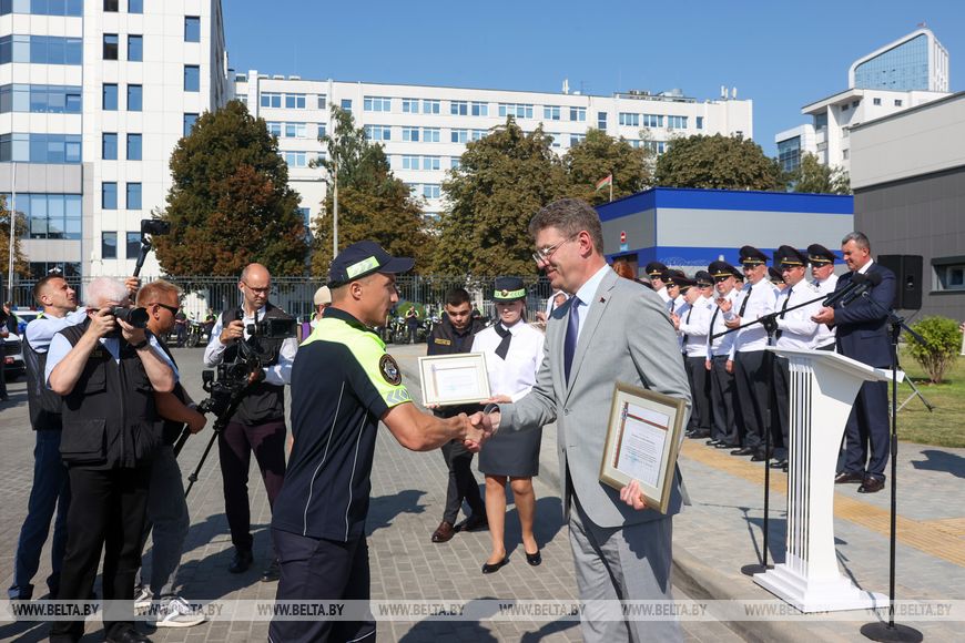 Председатель Мингорисполкома Владимир Кухарев подчеркнул, что сотрудники ГАИ успешно обеспечивают безопасность движения в городе, несмотря на высокую нагрузку. "Вы не останавливаетесь на достигнутом и постоянно вносите предложения, которое рассматриваются, анализируются и принимаются. Новые решения позволяют значительно улучшить безопасность на дорогах Минска", - сказал Владимир Кухарев.-0-