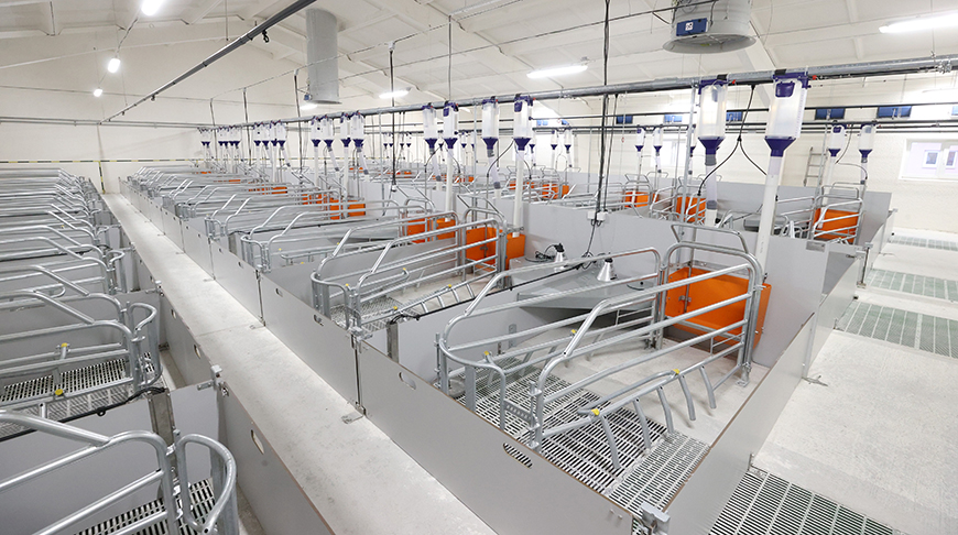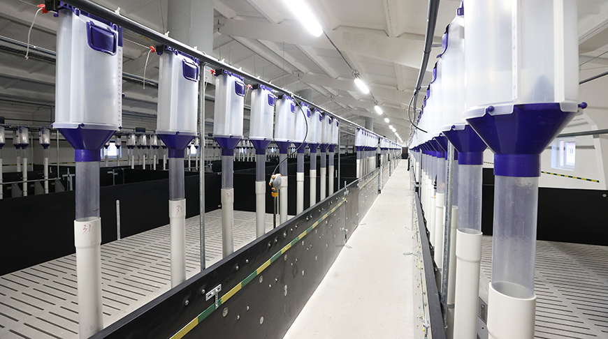 На современном объекте применена датская технология, направленная на снижение потребления электричества и тепловой энергии. Специальные устройства, установленные в секциях содержания свиней, экономно расходуют корма и воду: животные получают ровно столько, сколько потребляют.