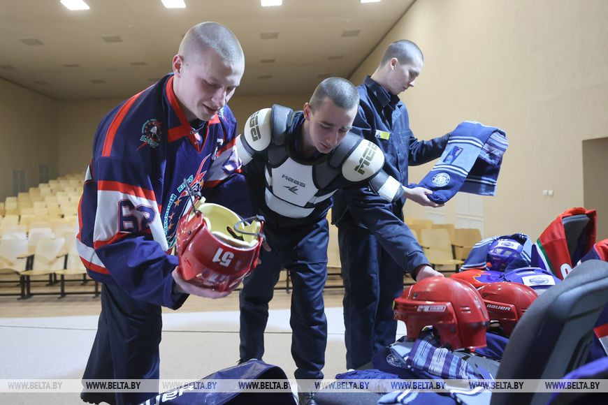 Буквально полтора месяца назад эту колонию посещал заместитель председателя Постоянной комиссии Совета Республики по образованию, науке, культуре и социальному развитию Дмитрий Басков. Он познакомился с исправительным учреждением, его спортивной инфраструктурой. "Он встретился тогда с ребятами, пообщались. Дмитрий Басков отметил, что здесь хорошо развита спортивная жизнь: есть футбольная, баскетбольная и волейбольная площадки, воркаут-зона. Своими силами они обустроили себе хоккейную коробку. Зимой заливают лед, но экипировки им не хватает, - рассказал генеральный секретарь Федерации хоккея Беларуси Андрей Башко. - Поэтому хоккейные клубы Беларуси совместно с Федерацией хоккея привезли сегодня спортивный инвентарь: клюшки, шайбы, шлемы, коньки, куртки, шапки, шарфики - все то необходимое, что нужно ребятам для игры на льду".