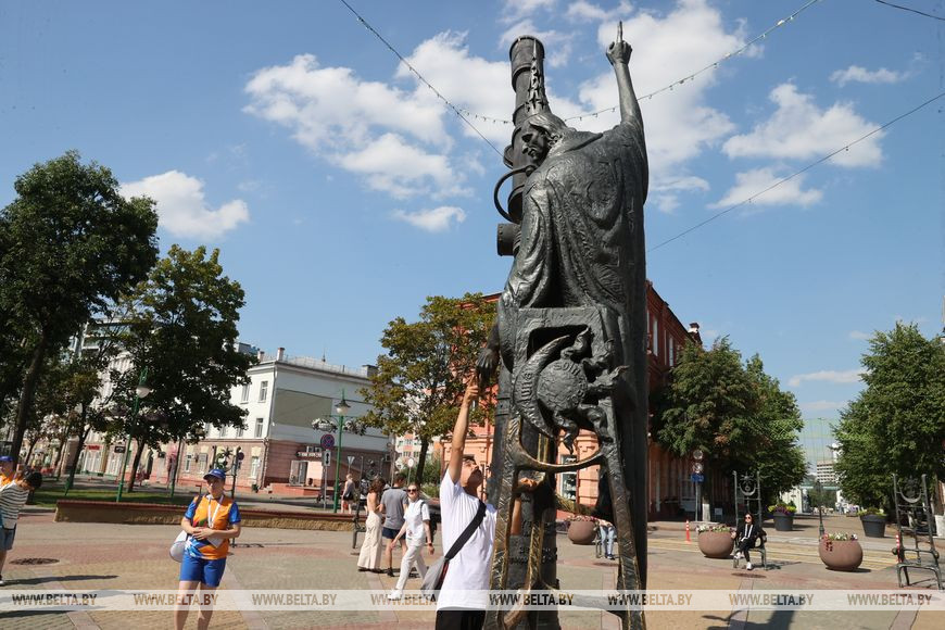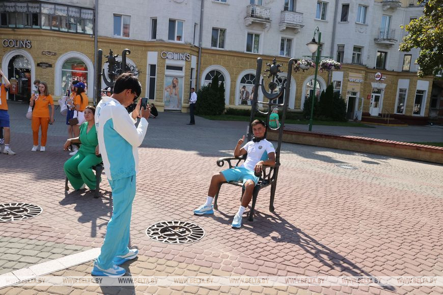 Аномально жаркая погода не отбила у ребят желания познакомиться с городом, узнать его историю, посмотреть достопримечательности и послушать городские легенды. Для большего удобства спортсменов по городу передвигались на автобусе, останавливаясь и посещая знаковые места. Одним из таких стала площадь Звезд, напоминающая солнечные часы, центр которых - фигура Звездочета. А по полукругу от него расставлены кресла, каждое из которых соответствует знаку зодиака. Согласно городской легенде, если сесть в кресло своего знака, загадать самое заветное желание, а потом взять Звездочета за палец, то оно обязательно сбудется. Лучники тоже решили не упускать такой шанс, обещали рассказать, исполнилось ли желание, когда приедут в следующий раз в Могилев.