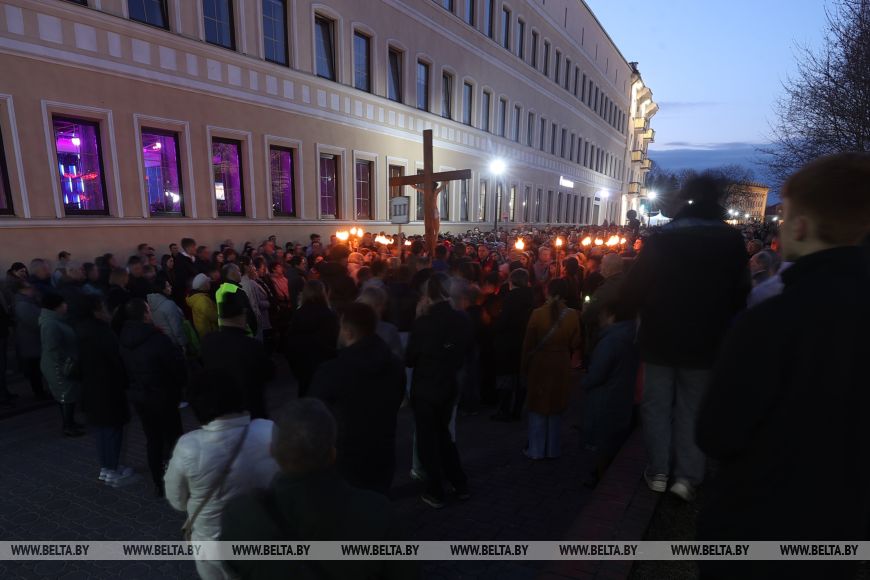 Организаторы создали особую молитвенную атмосферу для того, чтобы показать муки Иисуса Христа, переживания во время Великого поста. 14 остановок, которые символизируют дорогу Иисуса: его падения, встречу с матерью, с Симоном Киринейским, который помогал ему нести крест, распятие, положение во гроб.-0-