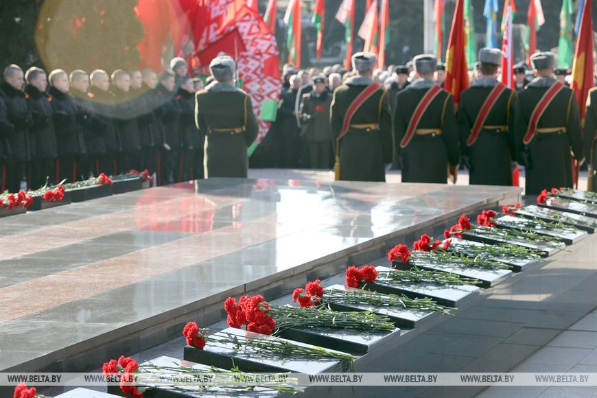 Слова благодарности мужественным, доблестным защитникам Родины, героическим предкам адресовал на митинге курсант Белорусского государственного университета транспорта Александр Крупский. "Беларусь - наш общий дом. Наши деды и прадеды защитили его в жестоких боях, возродили из руин и пепла и, как бесценное сокровище, передали нам. Благодаря поколению героев мы родились, выросли в суверенном и сильном государстве, самостоятельно определяем свою судьбу и будущее", - отметил он.
