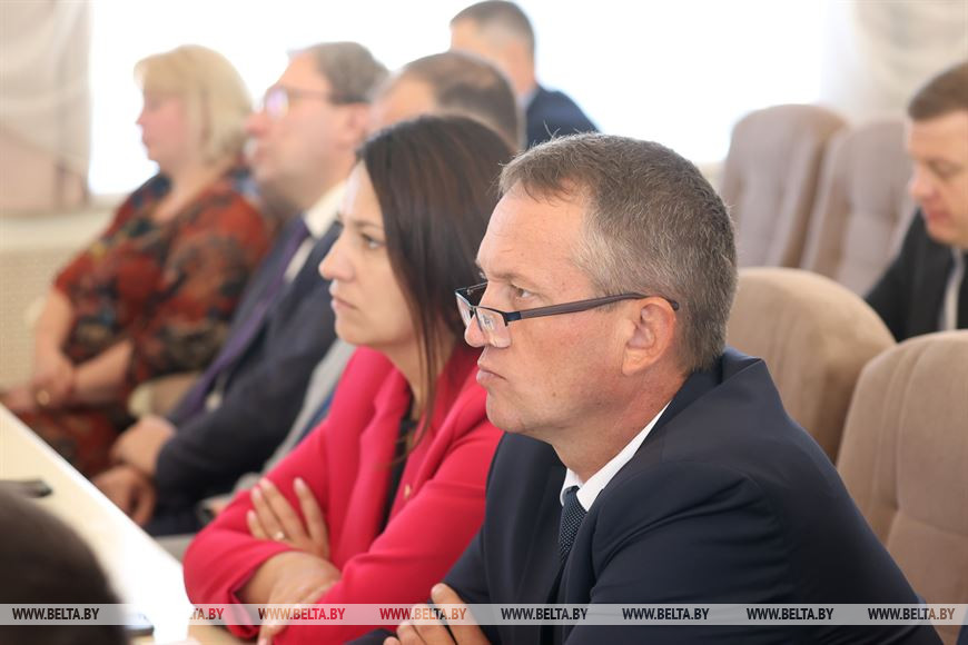 Участие в заседании принимают первый заместитель главы Администрации Президента Максим Рыженков, заместитель управляющего делами Президента Николай Рогащук, помощник Президента - инспектор по Гомельской области Юрий Горлов.