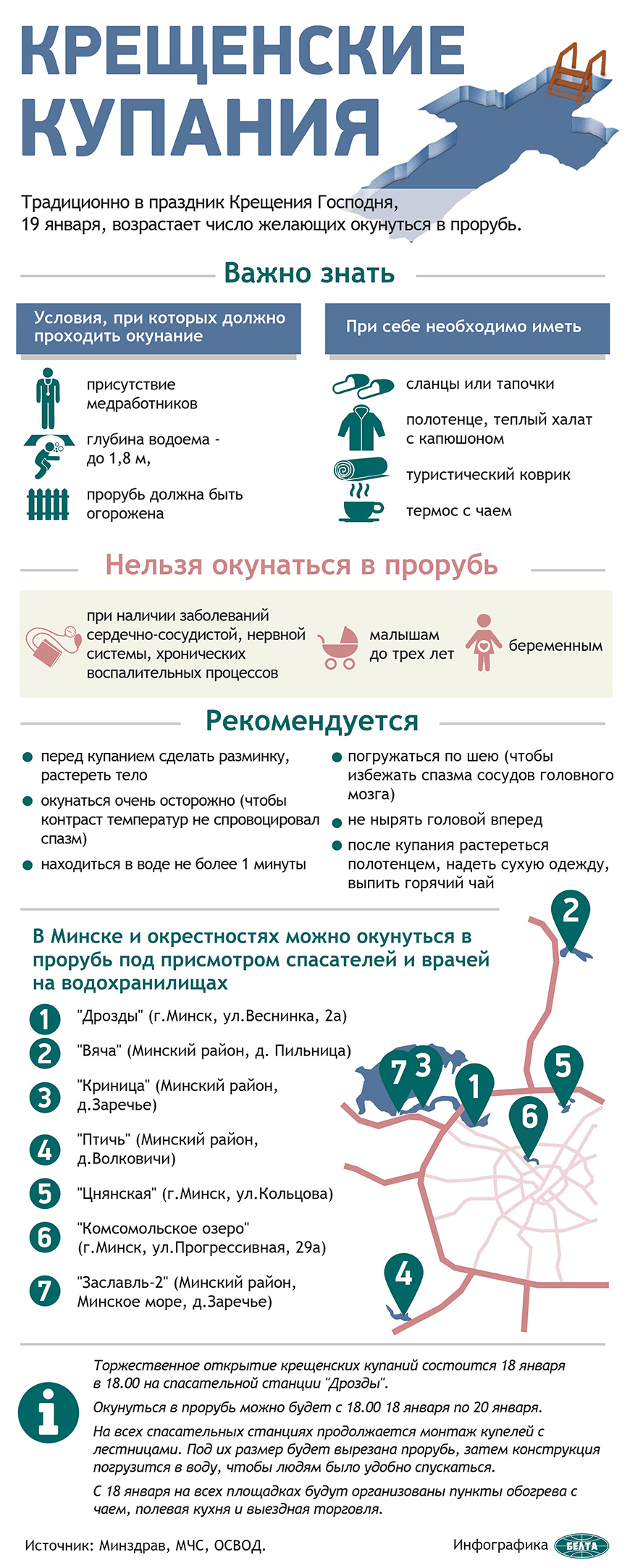 В этом году в Логойске также будут организованы крещенские купания. Обряд освящения проруби с безопасным спуском провели на реке Гайна. Окунуться также можно в купелях, которые размещены на территории церкви. На местах будут дежурить бригады скорой помощи, рядом установят лотки с горячими напитками. Для паломников организовано несколько автостоянок: возле райисполкома, Белагропромбанка и церкви.-0-