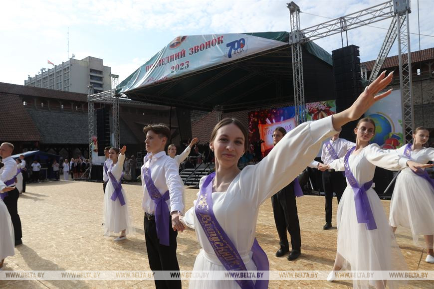 Республиканский праздник "Последний звонок" было решено провести 23 мая в Лиде. Основными площадками стали Лидский замок и Ледовый дворец. Более 1,5 тыс. лучших выпускников со всей страны были приглашены на торжество. Все они отличники образования, активисты общественной жизни, победители и призеры творческих конкурсов, фестивалей, чемпионы, добившиеся высоких спортивных результатов, и просто умные, активные и самое главное - по-настоящему преданные своей стране ребята. Корреспонденты БЕЛТА побывали на празднике, прошли с выпускниками по старинному городу, услышали тот самый последний звонок в Лидском замке и потанцевали под "Выпускной" Ивана Здонюка в Ледовом дворце.