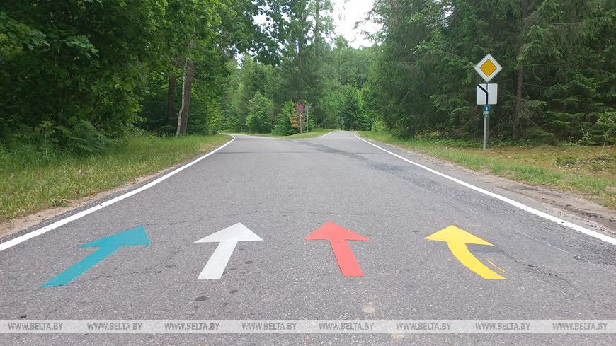 Нынешней весной веломаршруты обозначили цветами - белым, красным, зеленым и желтым. Сделали это для удобства навигации туристов, чтобы им не приходилось постоянно заглядывать в карту за уточнениями. "Звериный переход" увлекает за собой яркой желтой стрелочкой. Этот маршрут проложен вдоль южной границы Беловежской пущи. Первые километры велосипед катит по асфальтированной дороге. На одной из развилок она уходит влево и путешествие продолжается по грунтовой дороге. Здесь на полную ощущаешь отрыв от цивилизации.