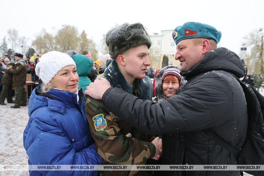 19 ноября, Витебск /Корр. БЕЛТА/. Служба в армии позволит сыновьям стать крепче духом и сильнее физически. Такое мнение корреспонденту БЕЛТА на церемонии принятия военной присяги новобранцами 103-й Витебской отдельной гвардейской воздушно-десантной бригады озвучила мама новобранца Олеся Кораневская.