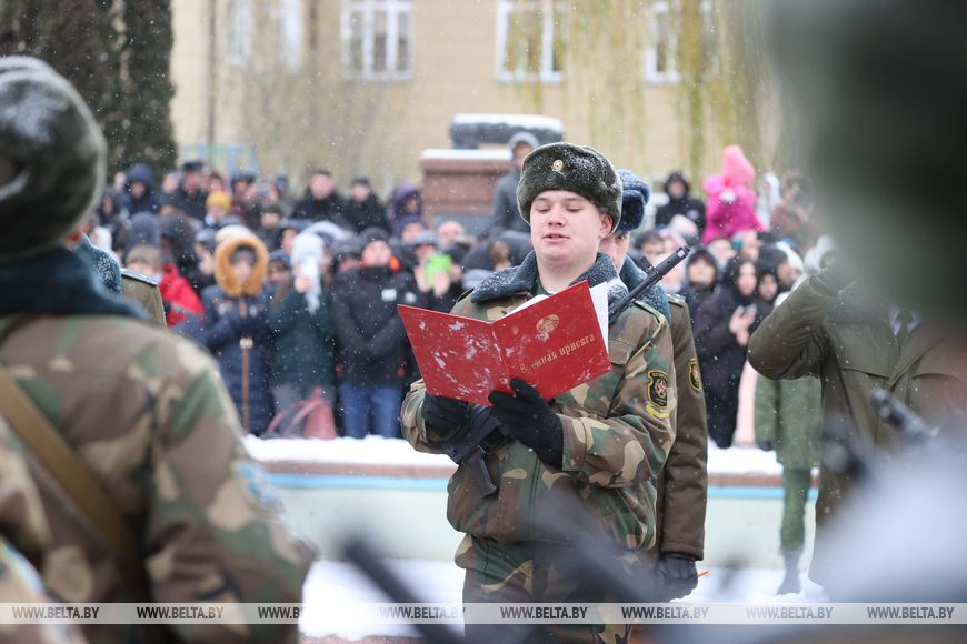 Сегодня на площади Победы в Витебске приняли присягу более 500 новобранцев. В присутствии руководства региона, командования и ветеранов сил специальных операций и своих родных молодые люди произнесли клятву на верность Родине, пообещав мужественно и самоотверженно защищать независимость и территориальную целостность страны.-0-