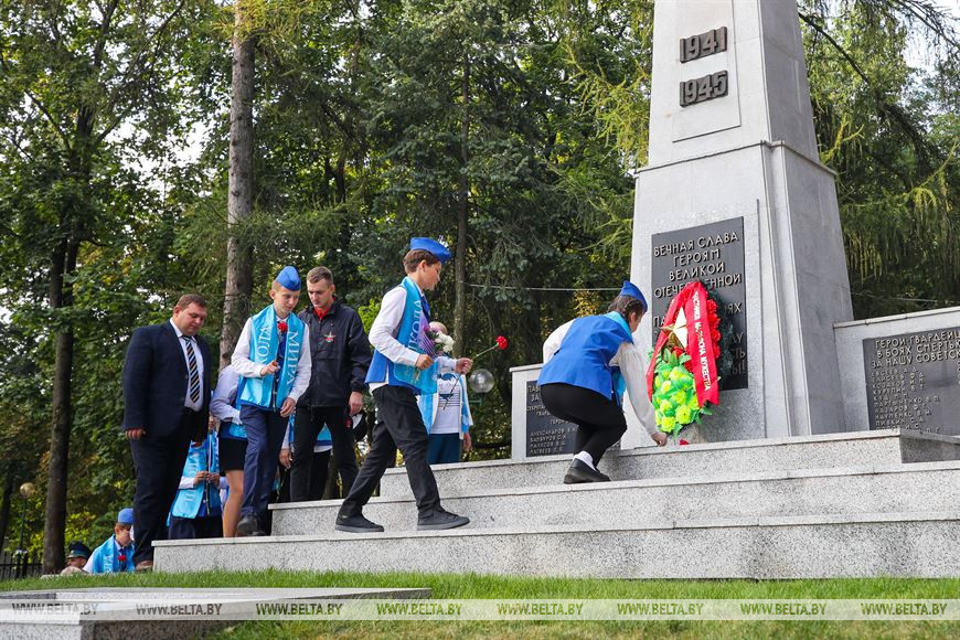 В путь участники марафона мужества отправились из Бреста. В областном центре у памятника на братской могиле советских воинов-освободителей, погибших в 1939 и 1944-1945 годах, прошел митинг. Следующая точка на маршруте - мемориальный комплекс "Дремлево" в Жабинковском районе. В Кобрине молодые люди побывают в политехническом колледже, посетят его музей и встретятся с учащимися. Затем юношей и девушек ждут в Дрогичине. Там они возложат цветы к памятнику воинам-освободителям, после чего сыграют в интеллектуальном турнире "Когда едины - мы непобедимы". Вторую половину дня молодые люди проведут в Пинске.