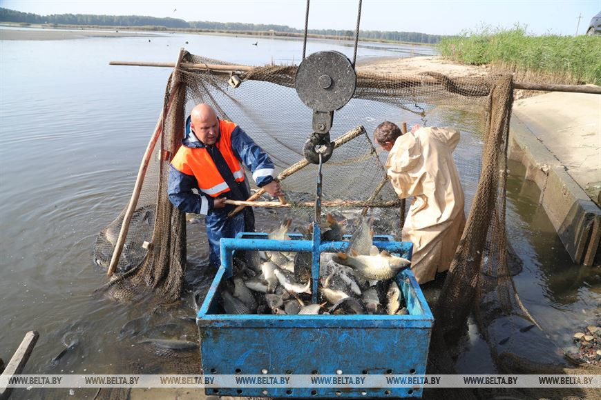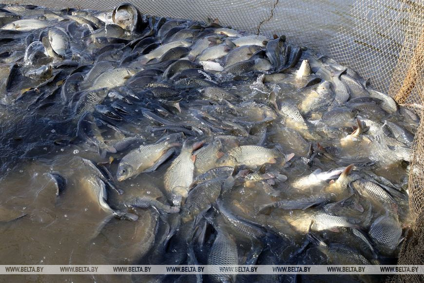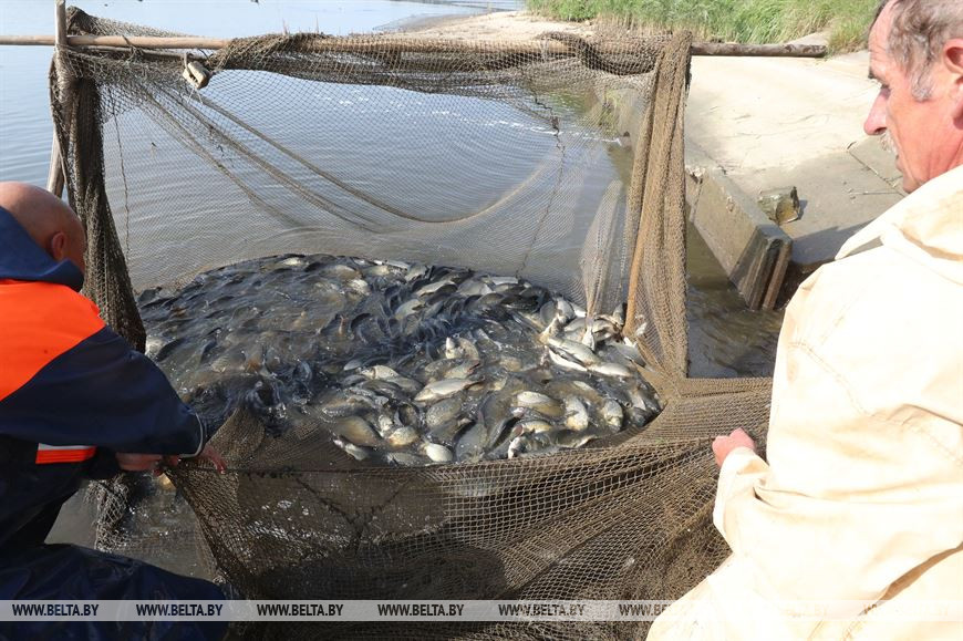 25 сентября, Осиповичский район /Корр. БЕЛТА/. В ОАО "Рыбхоз "Свислочь" начался массовый вылов рыбы. Ежедневный улов может достигать 20-30 т, передает корреспондент БЕЛТА.