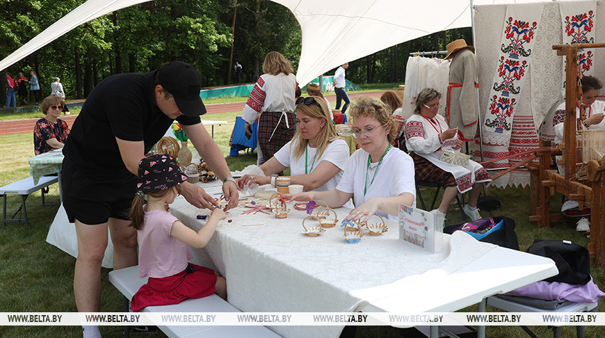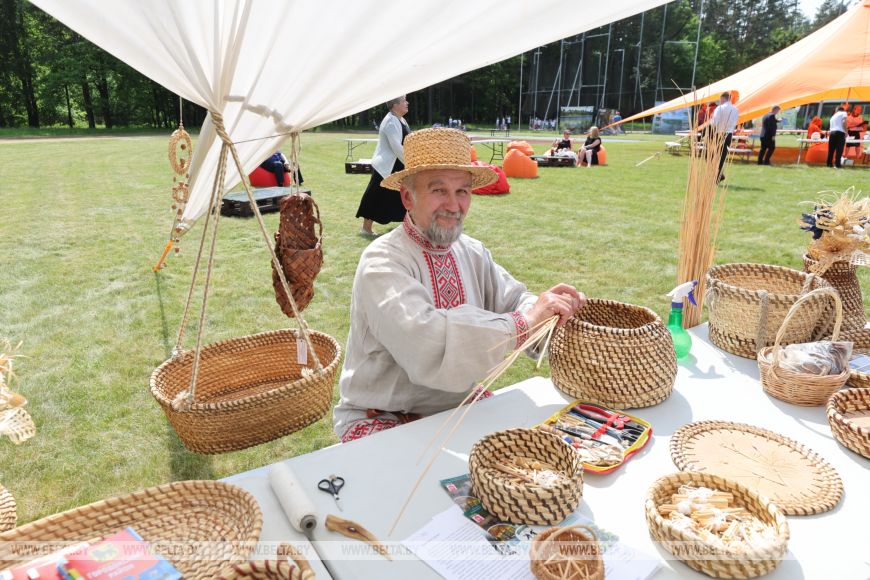 Мастер из Городка Витебской области Василий Симанкович познакомил с технологией спирального плетения - этот вид ремесла также включен в список нематериального культурного наследия страны. В работе используется ржаная солома и неочищенная лоза.