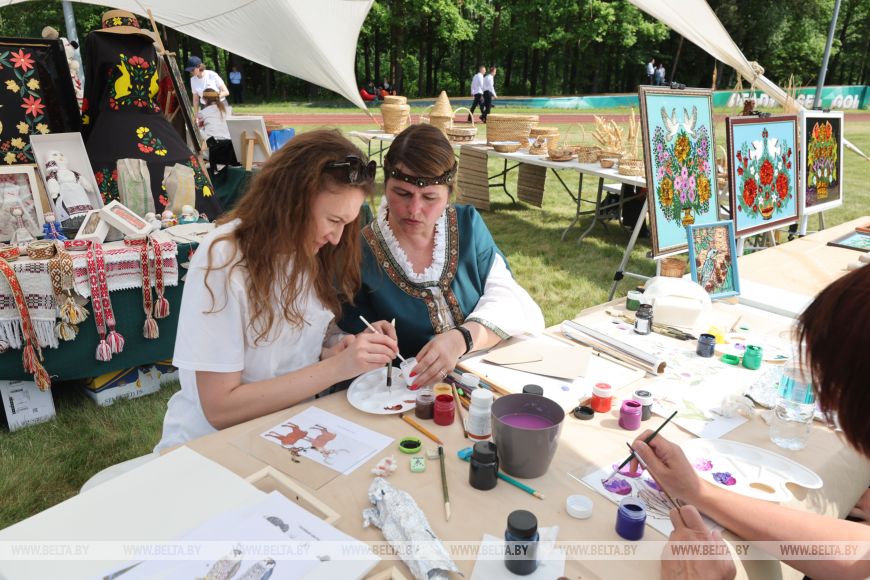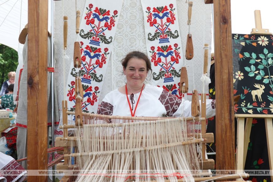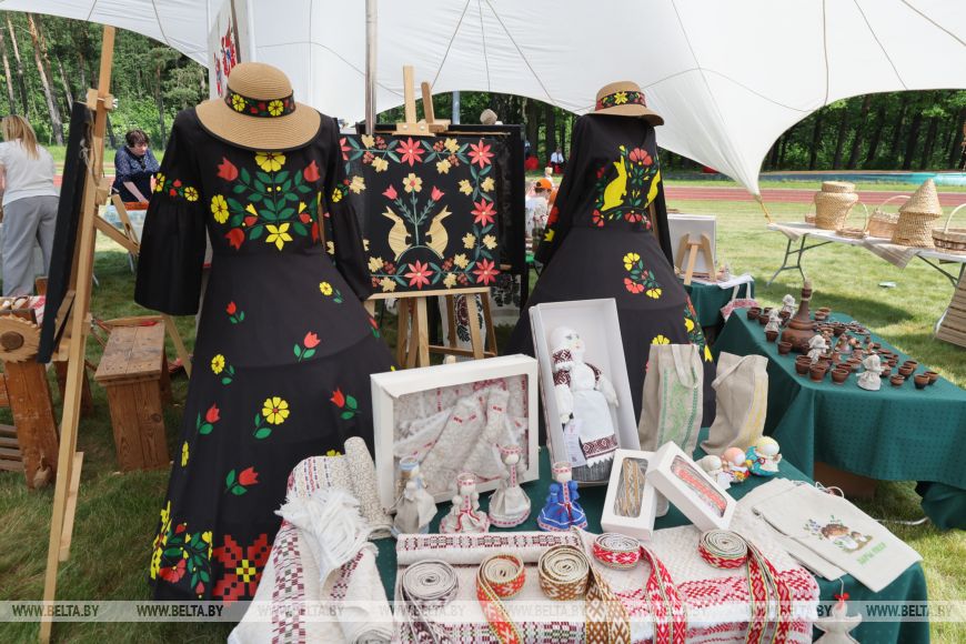 Свое творчество представили ремесленники. Для экспозиции подбирали экспонаты, которые показывают связь с природой. Например, из Старых Дорог привезли вышивку, тканые изделия, керамику. Особая гордость - яркие, украшенные разноцветной соломкой "руховские ковры", объект нематериального культурного наследия.