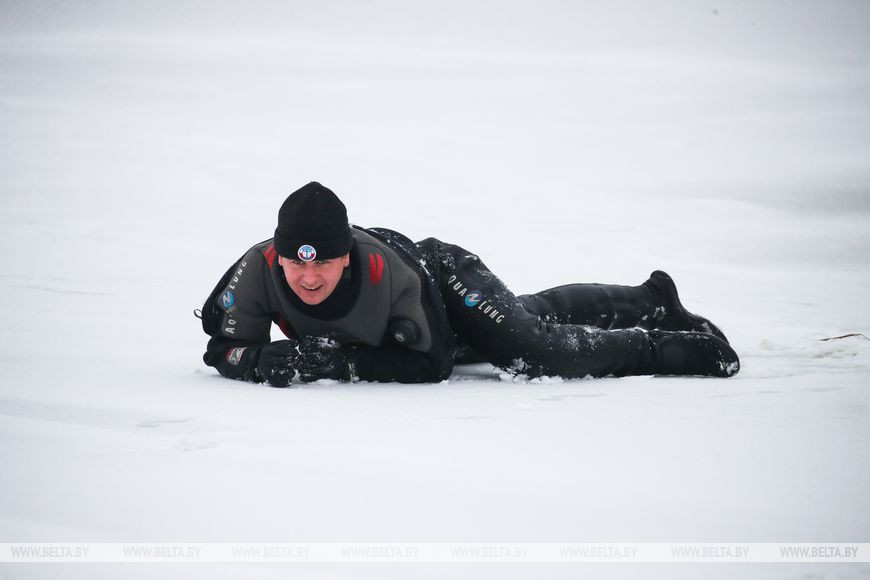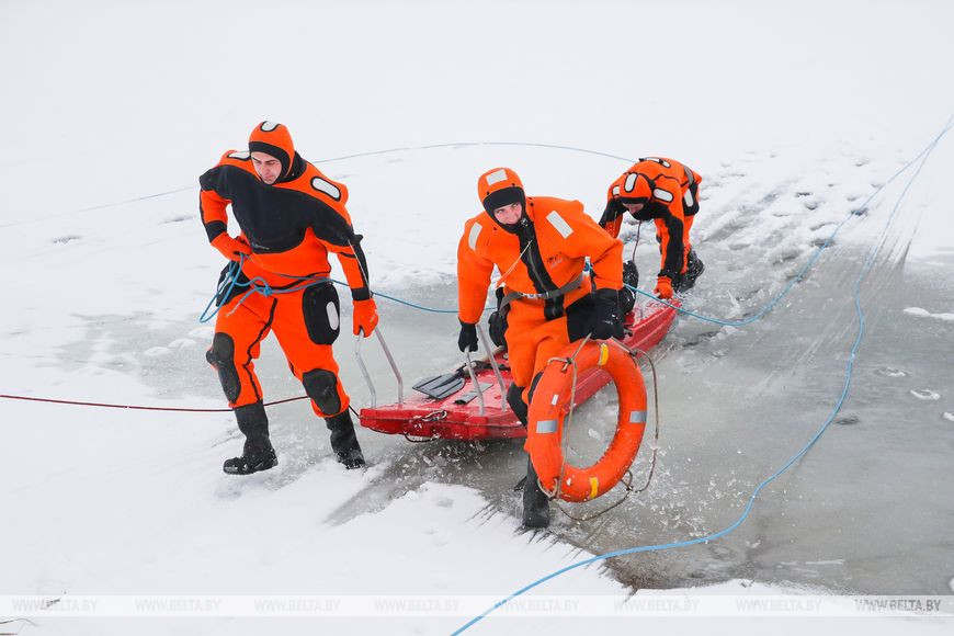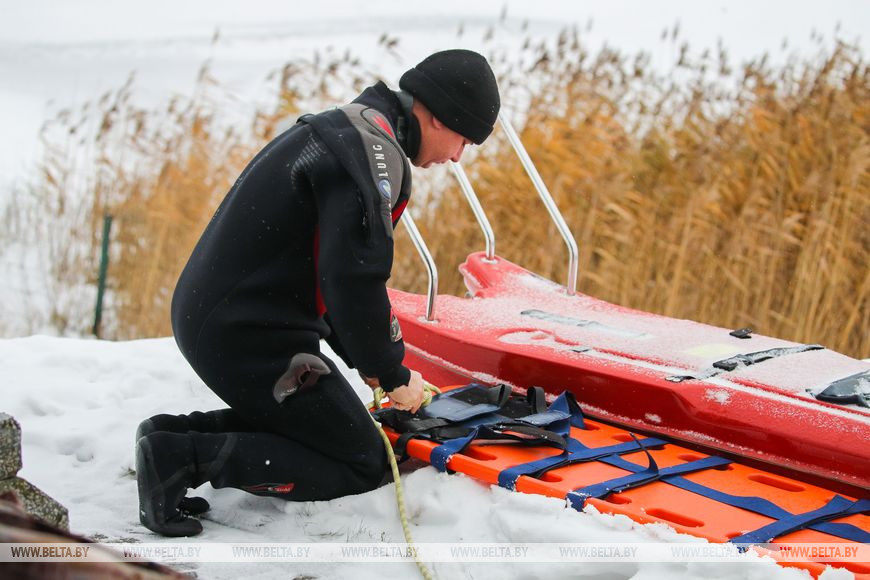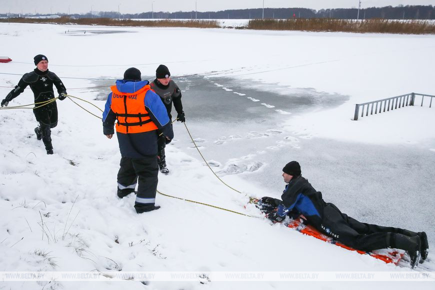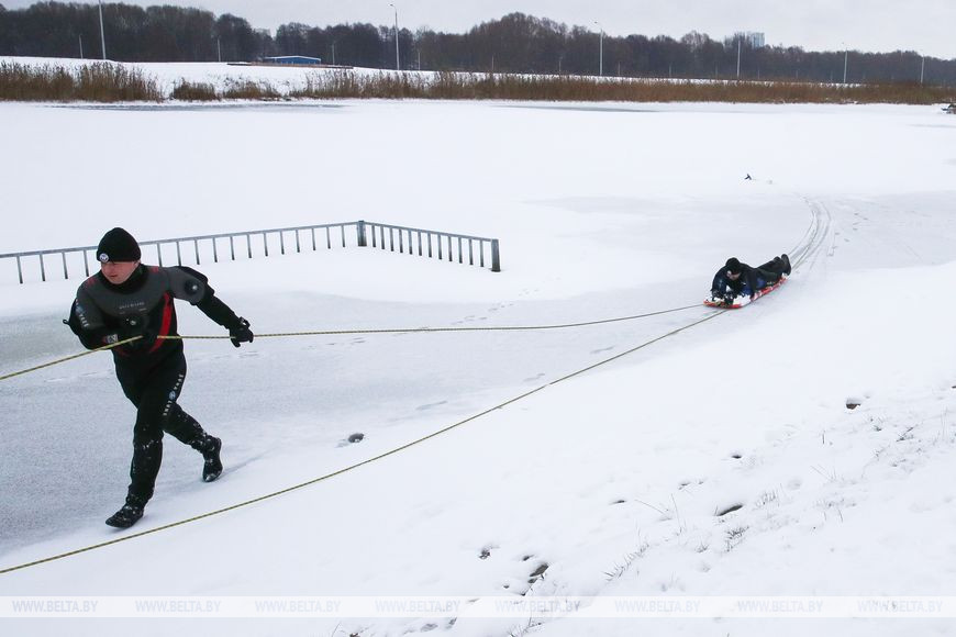 11 декабря, Брест /Корр. БЕЛТА/. В Бресте работники МЧС и ОСВОД провели совместное учение по спасению провалившихся под лед людей, передает корреспондент БЕЛТА.