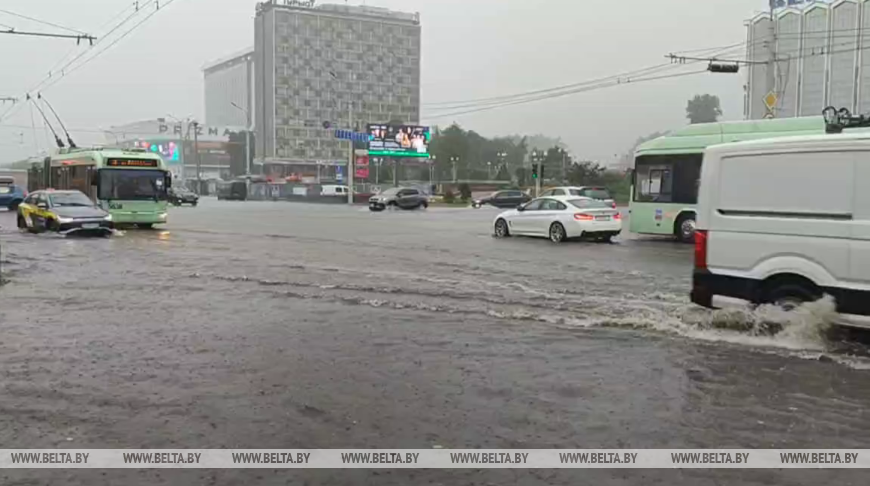 По оперативным данным, в Минске в результате обильного выпадения осадков в виде дождя (от 9 до 40 мм) зафиксировано 17 основных участков подтопления проезжих частей.