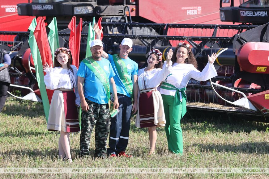 Вести о победах в эти августовские дни приходят не только с соревновательных площадок II Игр стран СНГ. Не менее напряженная атмосфера борьбы (и в целом за урожай, и между экипажами) - на хлебных нивах. Здесь на счету тоже каждое мгновение, каждое зернышко. И каждый успех - повод для радости и гордости. Сегодня, 9 августа, теплые слова поздравлений принимали сразу три экипажа комбайнеров и водитель унитарного сельскохозяйственного предприятия "СлавМол" Гомельского района. Им покорился рубеж в тысячу тонн намолоченного и перевезенного зерна. На чествовании лидеров жатвы побывали и корреспонденты БЕЛТА.