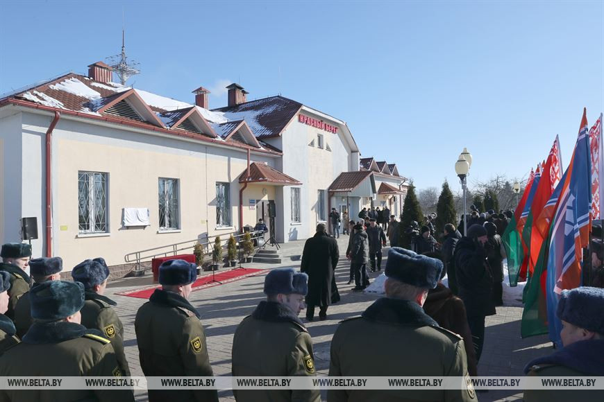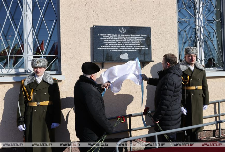 19 февраля, Жлобинский район /Корр. БЕЛТА/. Мемориальную доску в честь уникальной операции, проведенной в годы Великой Отечественной войны, открыли на здании железнодорожной станции Красный Берег в Жлобинском районе, передает корреспондент БЕЛТА.
