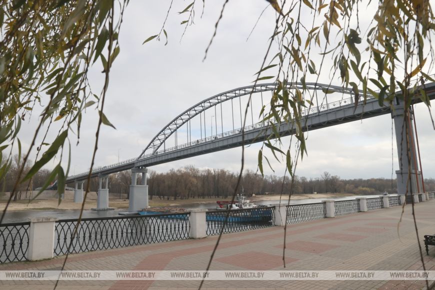 Пешеходный мост через Сож стал одной из визитных карточек областного центра. Конструкция протяженностью 243 м соединяет два берега реки в Гомельском парке - со стороны ул.Баумана и Центрального пляжа.