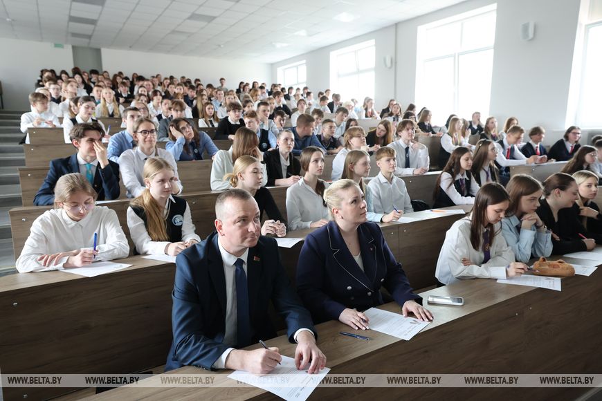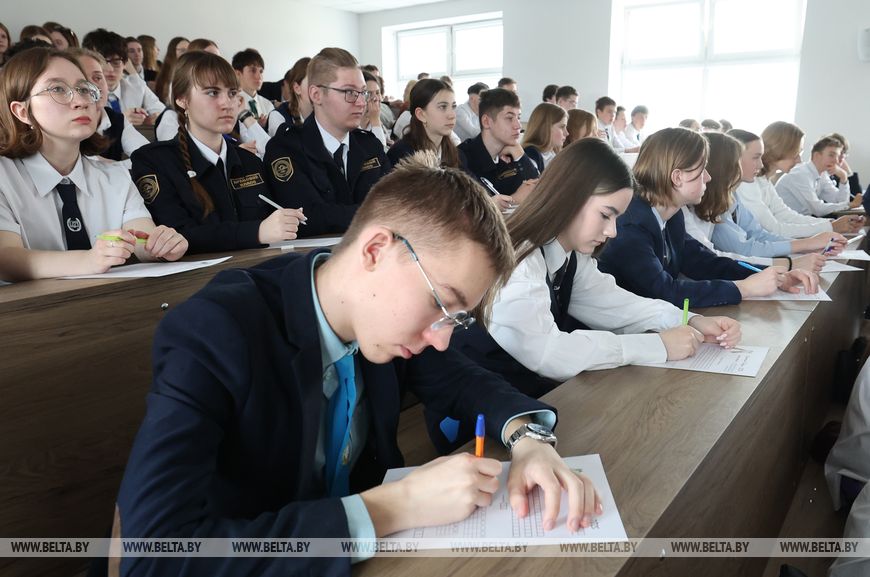 Обращаясь к участникам, Дмитрий Хома сказал: "Основные задачи диктанта - проверить и оценить уровень ваших знаний, еще раз напомнить, что мы находимся в преддверие 80-летия Великой Победы. Благодаря Победе советского народа мы с вами имеем возможность находиться здесь. Глава нашего государства делает все, чтобы Беларусь была мирной, а жизнь - спокойной. Помните и цените то, что у нас сегодня есть, что мы с вами живем в суверенной республике".