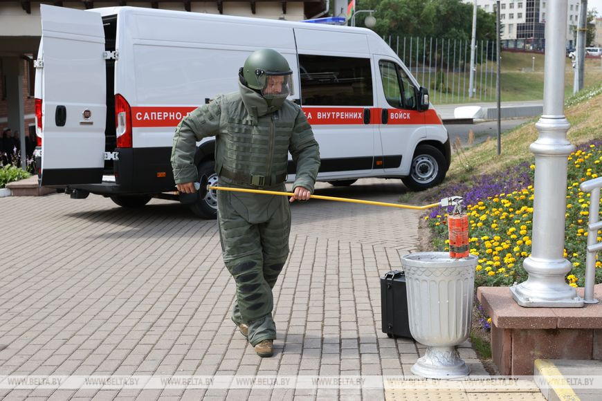 Сотрудники милиции готовы оперативно реагировать на любые угрозы. Расчет саперно-пиротехнической службы прибыл к амфитеатру по сигналу работников ЖКХ, которые обнаружили в мусорной урне предмет, похожий на взрывное устройство. Работа кинологов и их верных четвероногих друзей, слаженные действия саперов - и потенциально опасный предмет изъят.