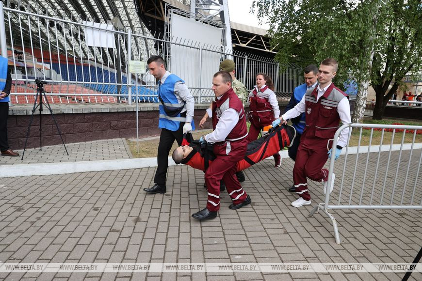 10 июля, Витебск /Алеся Пушнякова - БЕЛТА/. Помощь при недомогании, устранение угроз и экстренная эвакуация зрителей из Летнего амфитеатра - такие ситуации отработали на совместных учениях накануне "Славянского базара в Витебске" сотрудники милиции, медики и работники МЧС, передает корреспондент БЕЛТА.