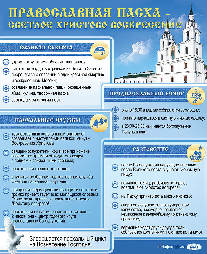 "На территории Минской области в 221 церкви пройдут 242 мероприятия, посвященных Пасхе по календарю православной конфессии. В целях обеспечения правопорядка и оказания помощи гражданам 23 и 24 апреля сотрудники милиции Минской области будут нести службу в усиленном варианте", - рассказали в УВД.