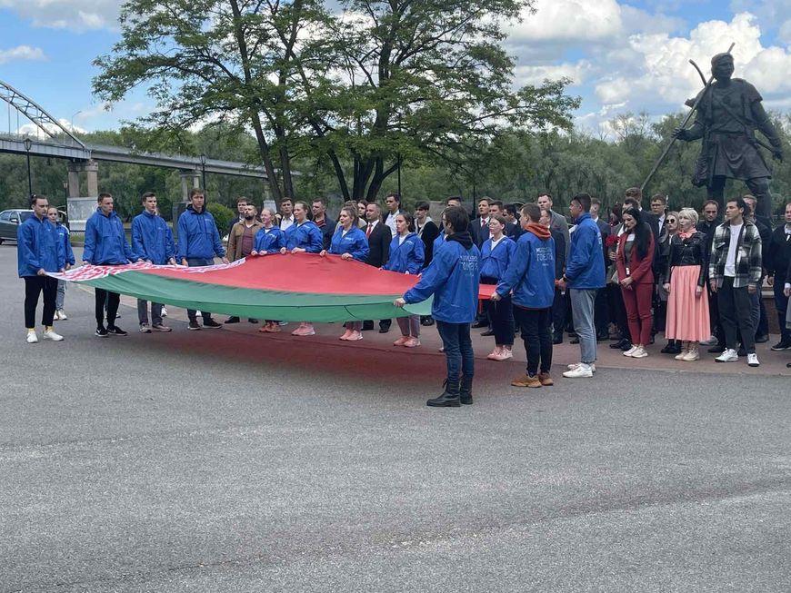 Красивым финальным аккордом форума стал патриотический флешмоб. Первый секретарь Гомельского обкома БРСМ Вероника Гудкова продолжила славную традицию акции "Роднае народнае" и передала участникам форума государственный флаг. Гомельчане и гости региона пронесли красно-зеленое полотнище по Киевскому спуску к памятнику первому гомельчанину на набережной Сожа. Также Вероника Гудкова передала участникам флаг Гомельской области, который принял участие в тысячах мероприятий БРСМ, в знак проявления патриотизма молодежи региона.-0-