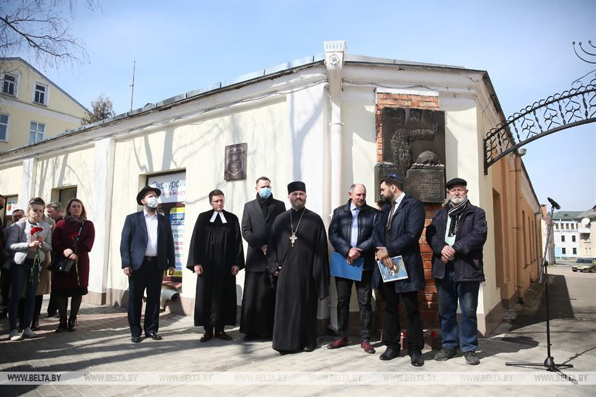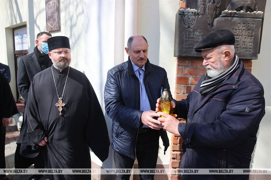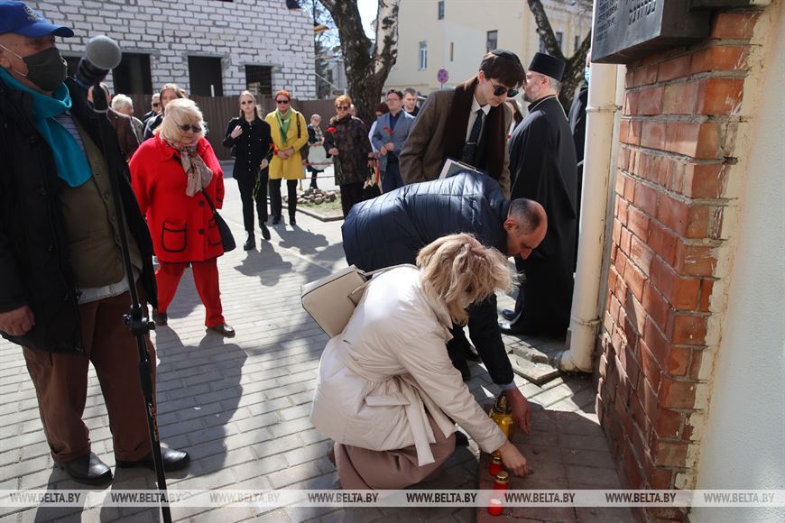 Завершился митинг-реквием возложением цветов к памятной плите у входа в бывшее еврейское гетто.