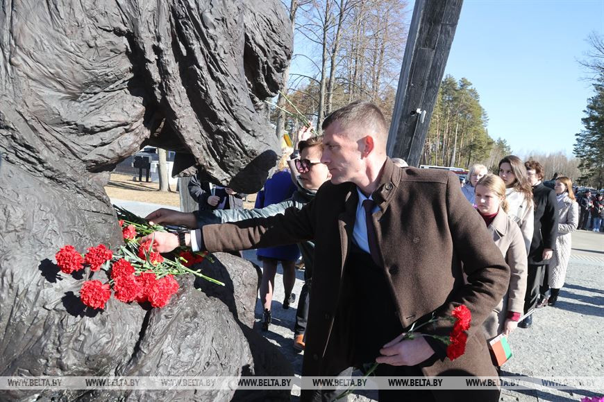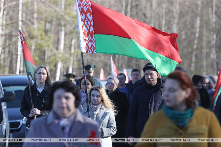 22 марта, Борки /Корр. БЕЛТА/. Митинг-реквием в память о жертвах сожженных деревень прошел сегодня в мемориальном комплексе в Борках. Он посвящен 79-й годовщине трагедии Хатыни, передает корреспондент БЕЛТА.