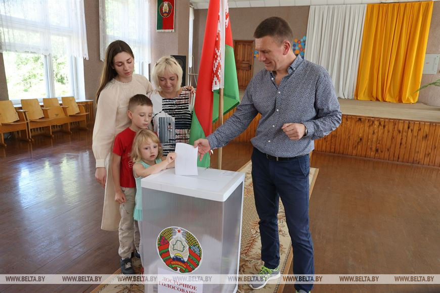 6 августа, Новополоцк /Корр. БЕЛТА/. Супруги Кузнецовы из Новополоцка сегодня на участке №17, расположенном в средней школе №7 города, приняли участие в досрочном голосовании. Они признались корреспонденту БЕЛТА, что голосуют за будущее своих детей, которое позволит им вырасти в крепком государстве и получить достойное образование.