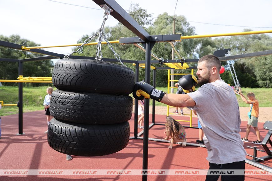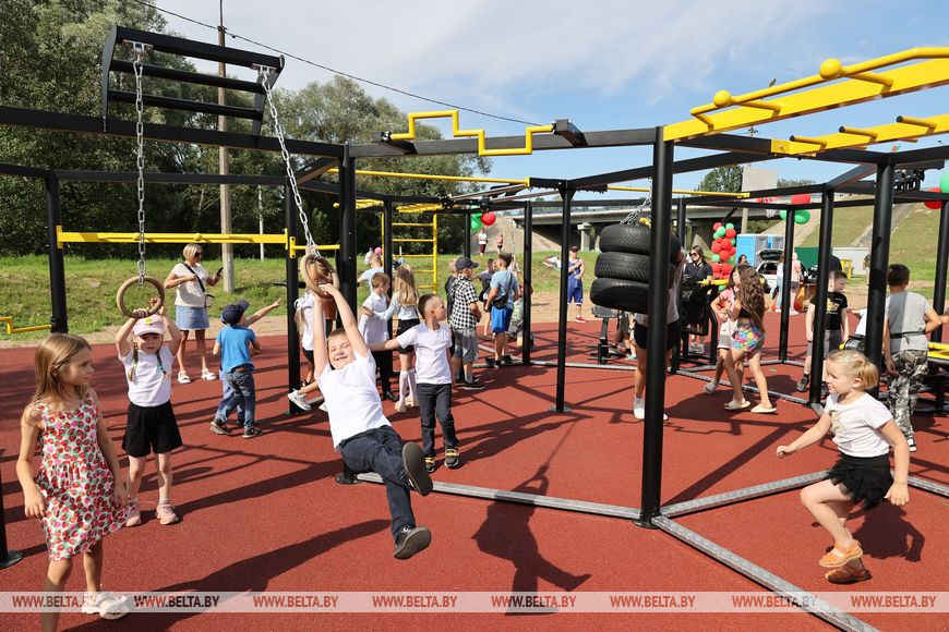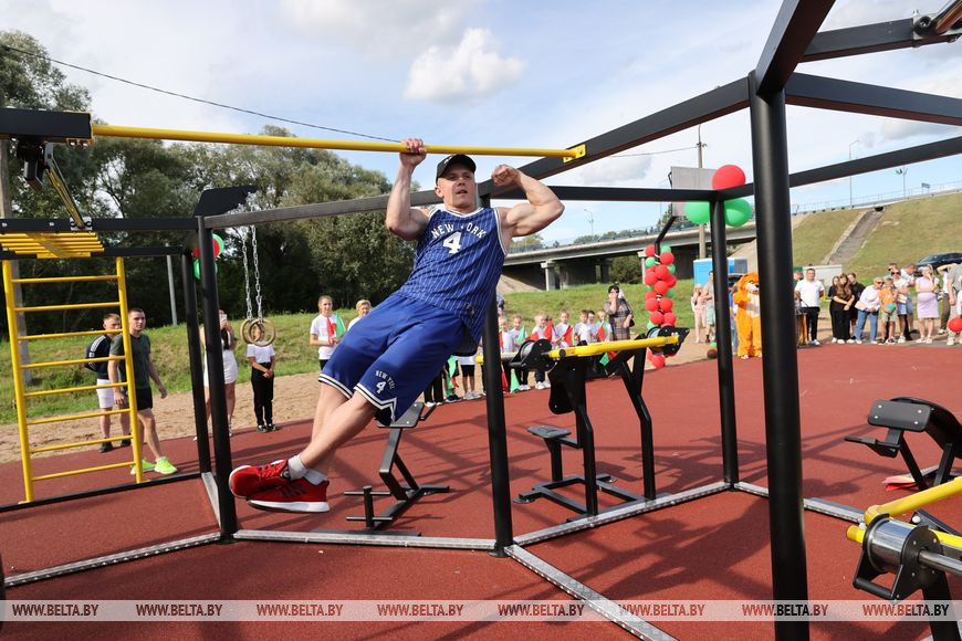2 сентября, Городок /Алеся Пушнякова - БЕЛТА/. Зона воркаута, тренажеры для разных групп мышц, турники для людей с ограниченными возможностями - в Городке открыли многофункциональную площадку, передает корреспондент БЕЛТА.