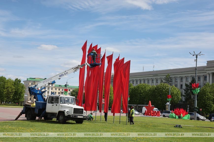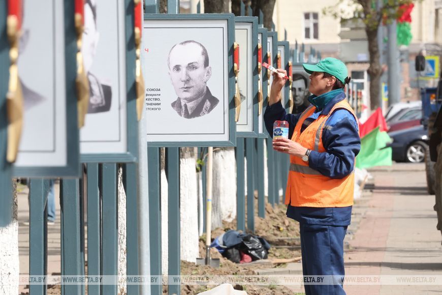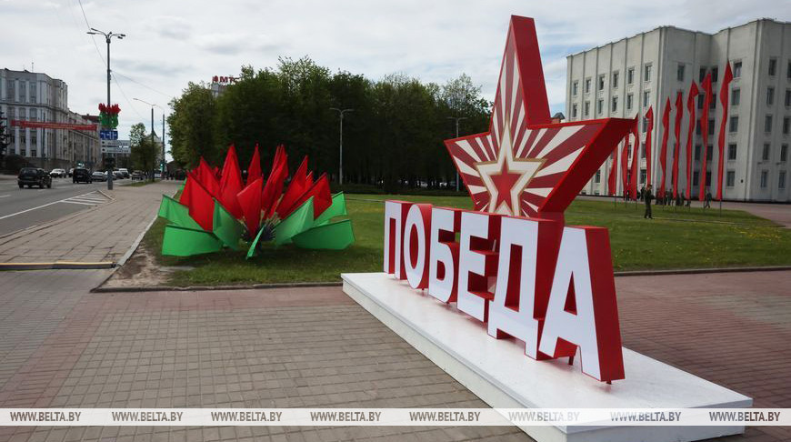 7 мая, Могилев /Корр. БЕЛТА/. Могилев украсили ко Дню Победы. На улицах появились тематические стенды и фотозоны.-0-