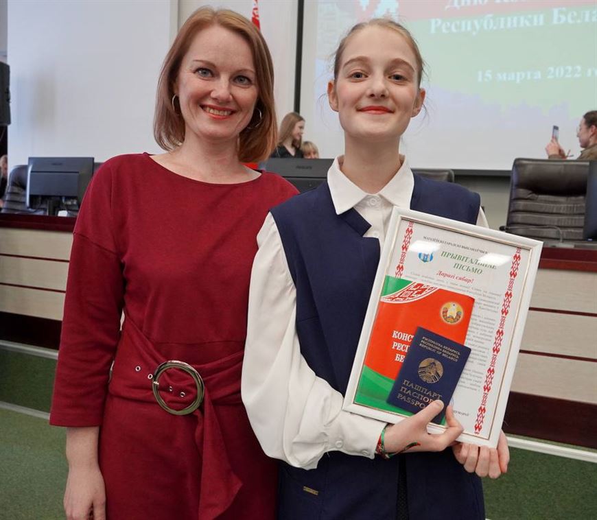 "Сегодня волнительный день для каждого из присутствующих - в торжественной обстановке нам вручат наши первые паспорта. Это станет символом еще только первой, но такой важной ступеньки в жизни каждого подростка. Наверное, в этом возрасте уже больше понимаешь, кем хочешь стать, когда вырастешь. Я хочу связать свою жизнь с вокалом, хочу стать певицей, - поделилась участница праздничного мероприятия. - Мы, может быть, еще до конца не осознаем, что сегодня стали участниками важного исторического момента для нашей страны. Ведь сегодня День Конституции, а недавно жители Беларуси проголосовали за обновление основного для страны закона".