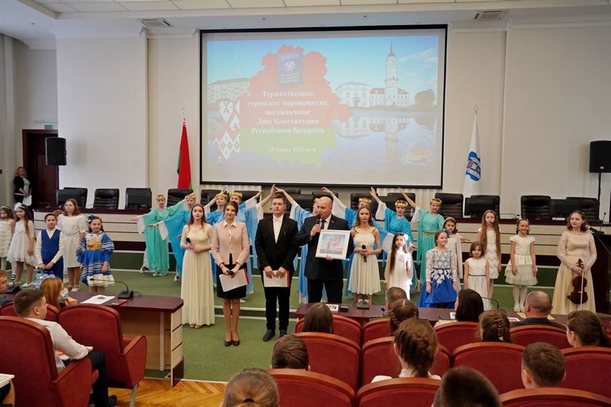 Среди почетных гостей, которые пришли поздравить юных и талантливых могилевчан, - председатель Могилевского городского Совета депутатов Максим Гурин. "Принятая 28 лет назад Конституция открыла новую страницу в истории нашей страны. Это знаковое событие позволило реализовать стремление многих поколений белорусов быть хозяевами на своей земле, жить в свободном, справедливом и благополучном обществе. Конституция заложила прочные основы государственного суверенитета и политического устройства Беларуси, установила гарантии социальных прав граждан, создала условия для сохранения и приумножения историко-культурного и духовного наследия нации, - отметил Максим Гурин. - Я искренне рад в такой праздничной и торжественной атмосфере приветствовать вас - лучших, умных, подающих большие надежды, совсем еще молодых людей - отличников учебы, победителей и призеров различных соревнований, предметных олимпиад и творческих конкурсов. Знаменательно, что сегодня вы получаете паспорта в день, когда обновленный Основной закон вступает в силу, 15 марта - в День Конституции. А это значит, что это событие войдет в учебники как очередная веха развития нашей суверенной Беларуси".