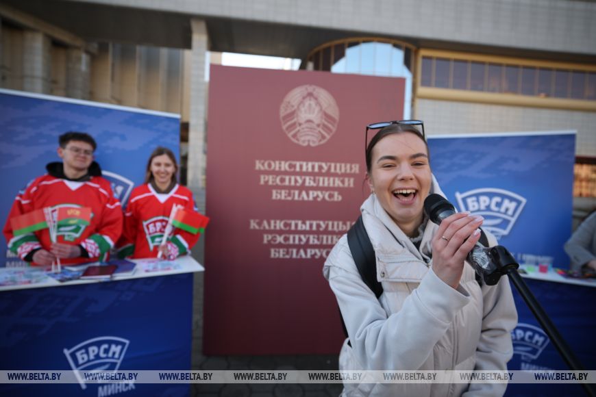 Студентка Академии управления Дарья Васильева воспользовалась такой возможностью. "Конституция - это наш большой фундамент, это наша защита во всем. Поэтому мы, молодежь, благодарны, что у нас есть возможность жить под мирным небом", - сказала девушка.Организаторы подготовили полутораметровые 3D-фотозоны, стилизованные под книгу Конституции. Минчане делали памятные фотографии на фоне объемной Конструкции и поздравляли друг друга.