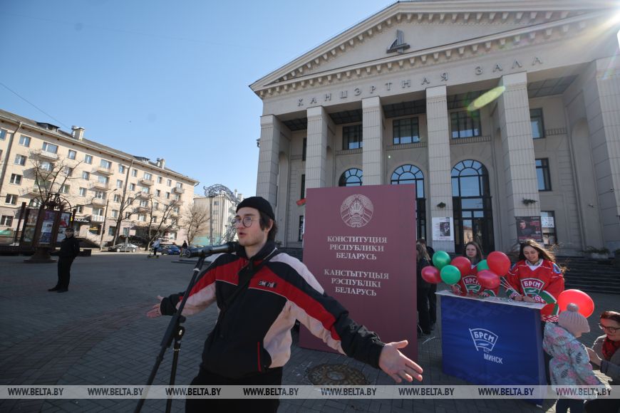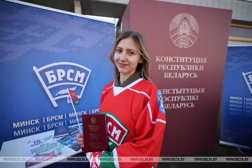 Первый секретарь Минского горкома БРСМ Алексей Пикус отметил, что молодежь столицы всецело присоединилась к празднованию Дня Конституции. "Молодежь, безусловно, ценит наш Основной закон, знает его, читает. Они очень благодарны тому, что сегодня мы живем в мирной, чистой, красивой стране, - сказал он. - И, конечно, в День Конституции мы не могли не выйти на улицы".-0-