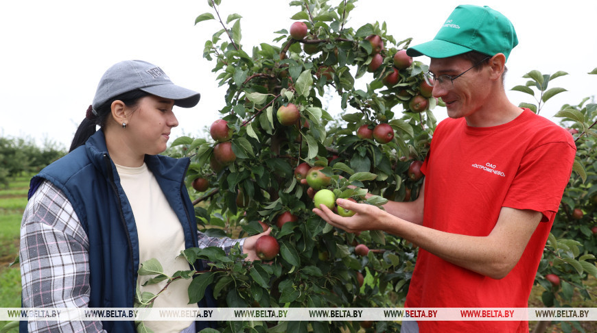 Среди них Елена Назарук, агроном-садовод, которая с апреля ухаживает за плодовым садом. Ее супруг Артем тоже работает в хозяйстве, но на другом участке - он бригадир по растениеводству. Оба окончили Ляховичский аграрный колледж и, имея выбор, остановились именно на Остромечево.