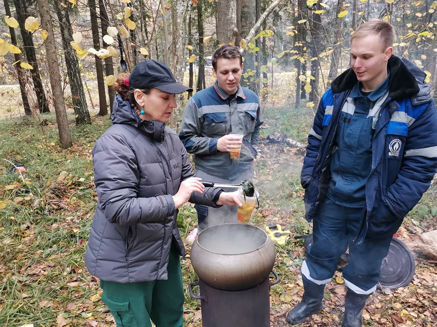 За несколько часов они высадили около 2 га ели и ольхи. А после посадочных работ для них организовали большой костер и угощения: горячий чай и ароматную уху.