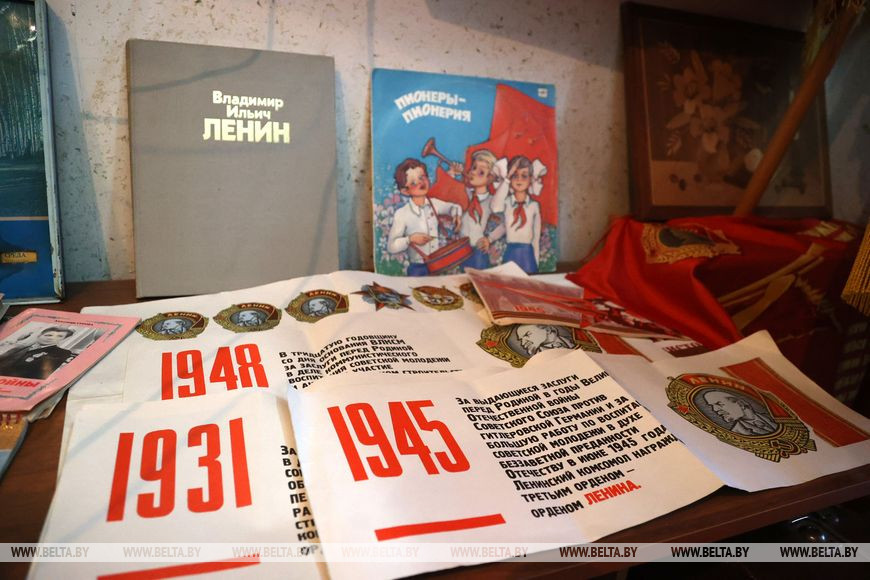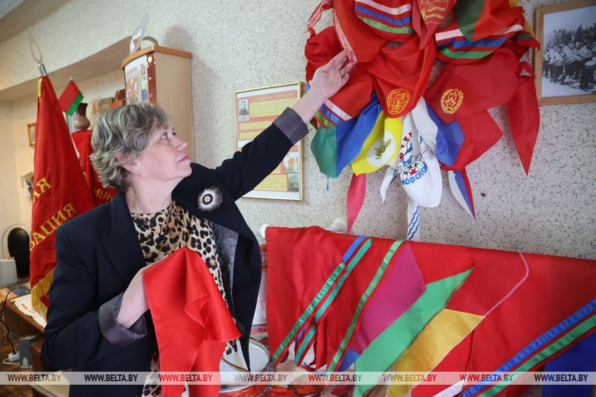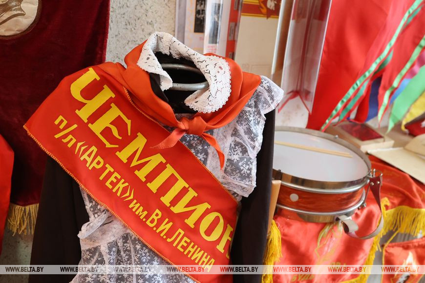 Отдельное место в музее занимает коллекция пионерских галстуков - главного символа нерушимой связи трех поколений: пионеров, комсомольцев и коммунистов. В экспозицию их передала председатель городского совета пионерской организации с 1999 по 2007 год Светлана Сербаева, которой удалось собрать символику за время работы и во время международных встреч. "После распада Всесоюзной пионерской организации статус республиканской сохранила только белорусская, поэтому и символика у нас была единая, - пояснила она. - А вот в России такого статуса организация не имела, и каждый регион принимал решение о своей символике. В палитре галстуков есть образцы Ханты-Мансийского, Читинского и Забайкальского автономных округов, Башкортостана, Краснодарского края, Ульяновска".